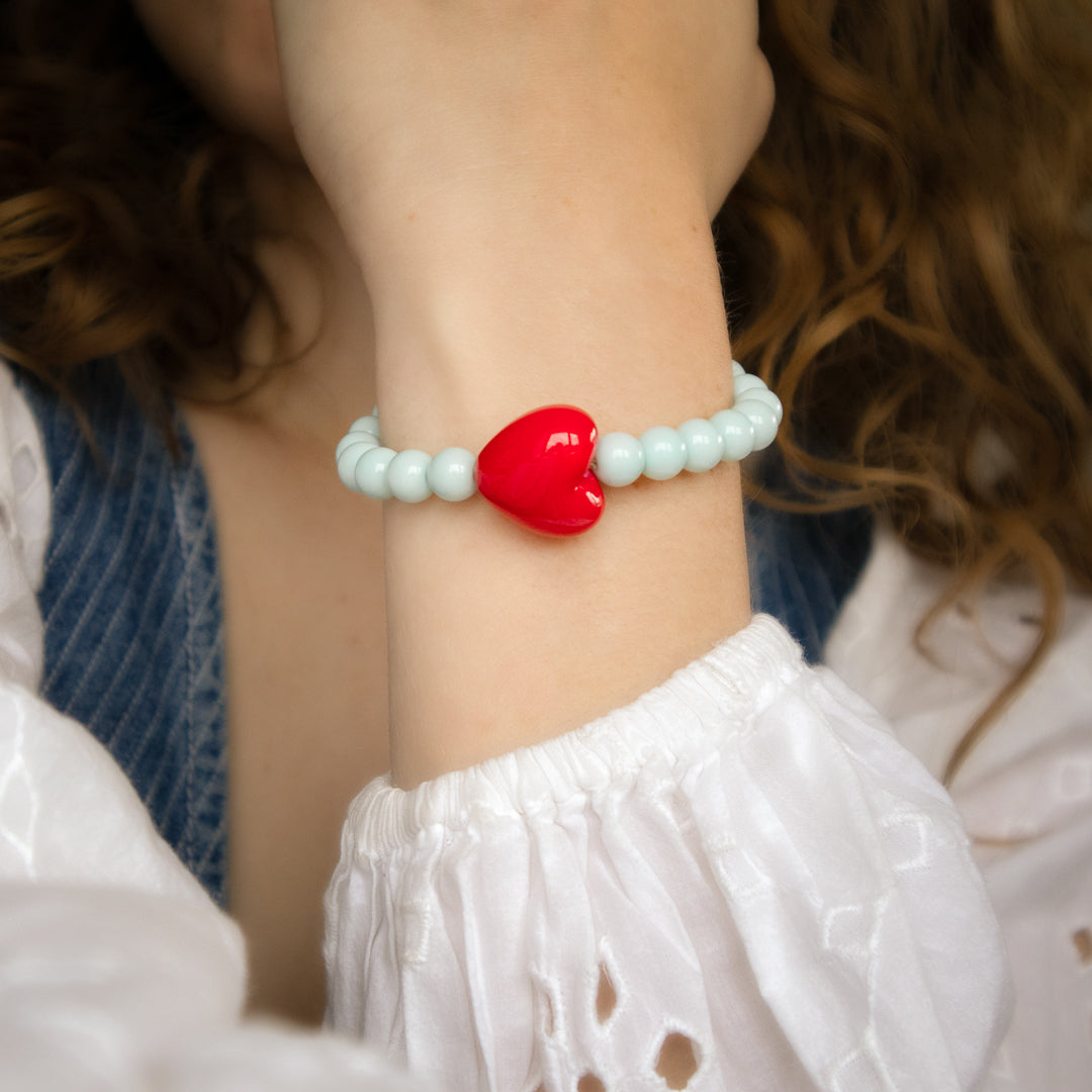 A playful blue beaded necklace finished with a bold red heart pendant - perfect for days when you want to feel joyful and free.