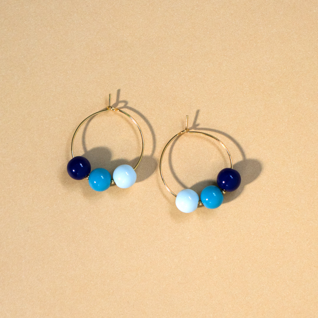 A simple stretch bracelet made with beads in five beautiful shades of blue. It has a lovely weight and a smooth, polished feel.  Made in our studio in Kent.