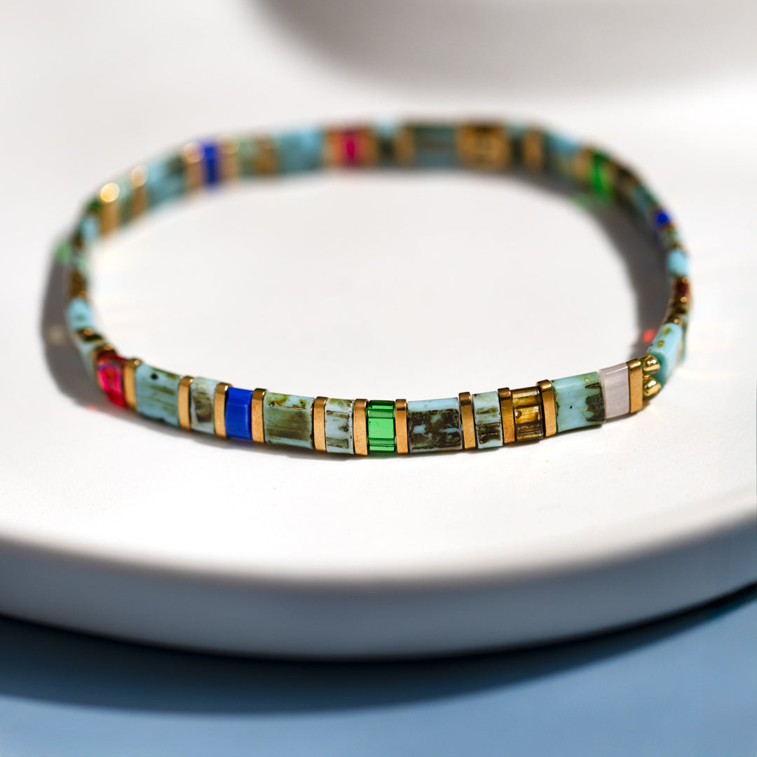 Turquoise Enamel Tile Stretch Bracelet